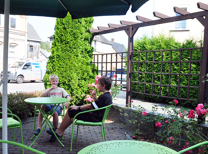 Das "Café TauscherBäcker" hat 16 Sitzplätze drin und in der schönen Jahreszeit noch 10 Sitzplätze draußen unter einem großen Schirm.